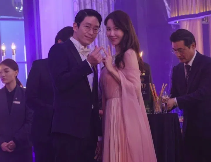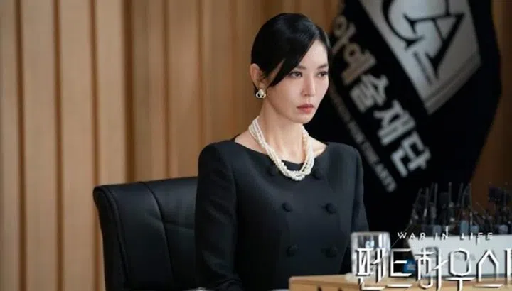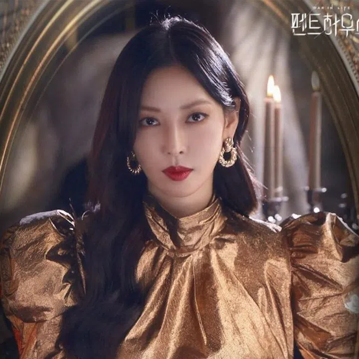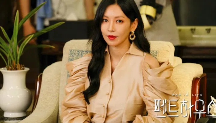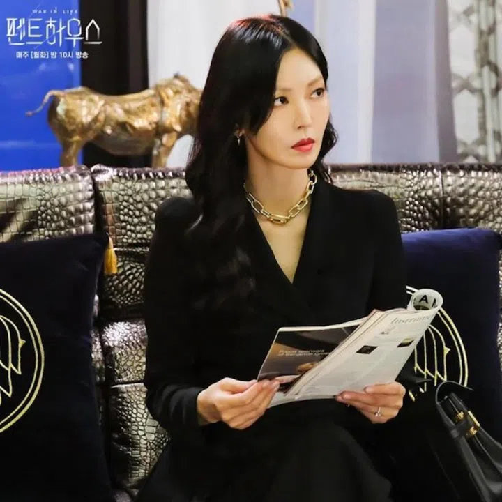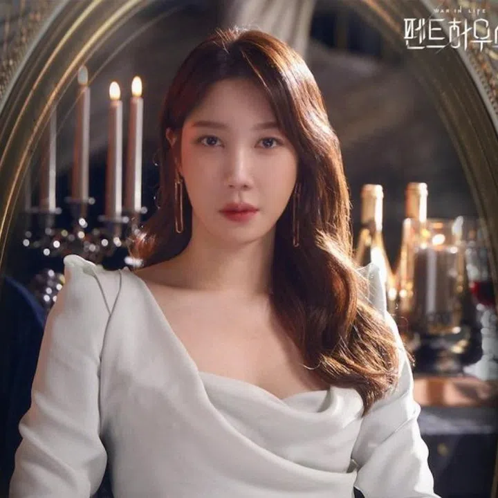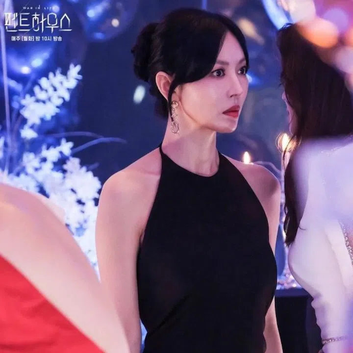 Lee Ji-ah appeared on the first episode wearing a demure dress with a pale pink shawl that fell to the ground, showing off the demeanour of the queen of the Penthouse.