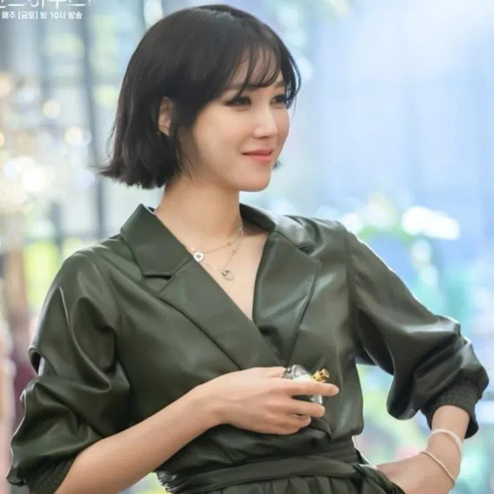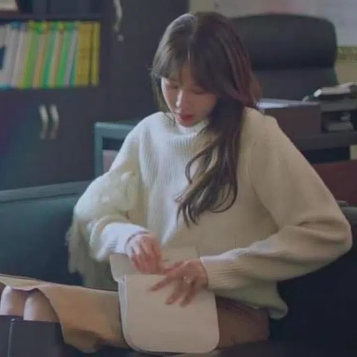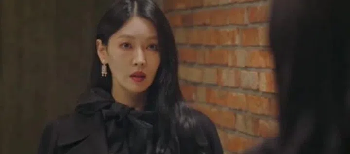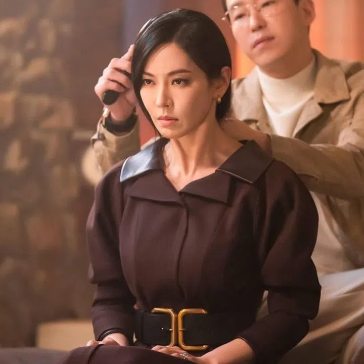 Despite being held captive by the main male character, Kim So-yeon remained sharp in her dressing. This Bau By Bride and You brown long-sleeved dress with its unique lapel neckline and chunky belt exemplified her impeccable fashion sense.