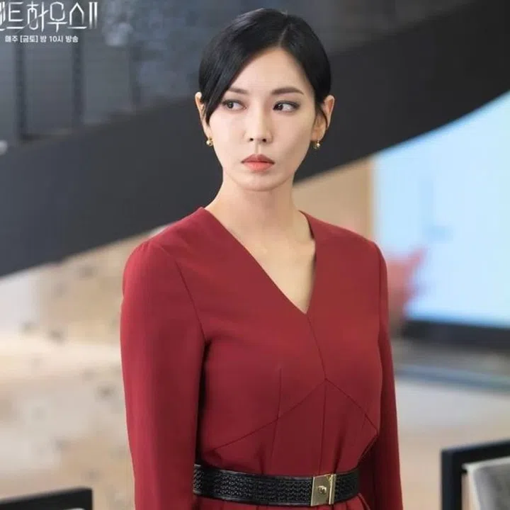 Kim So-yeon plays Cheon Seo-jin, perfectly embodying the villainous character with every glare and move. The character’s styling is both rich and eye-catching to complement her role.
