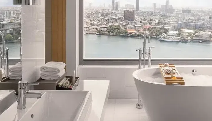 Each of the roomy River View Junior Suites features a bathroom with a view, complete with a freestanding tub allowing guests to relax and unwind whilst taking in Bangkok’s stunning skyline, especially at sunset.