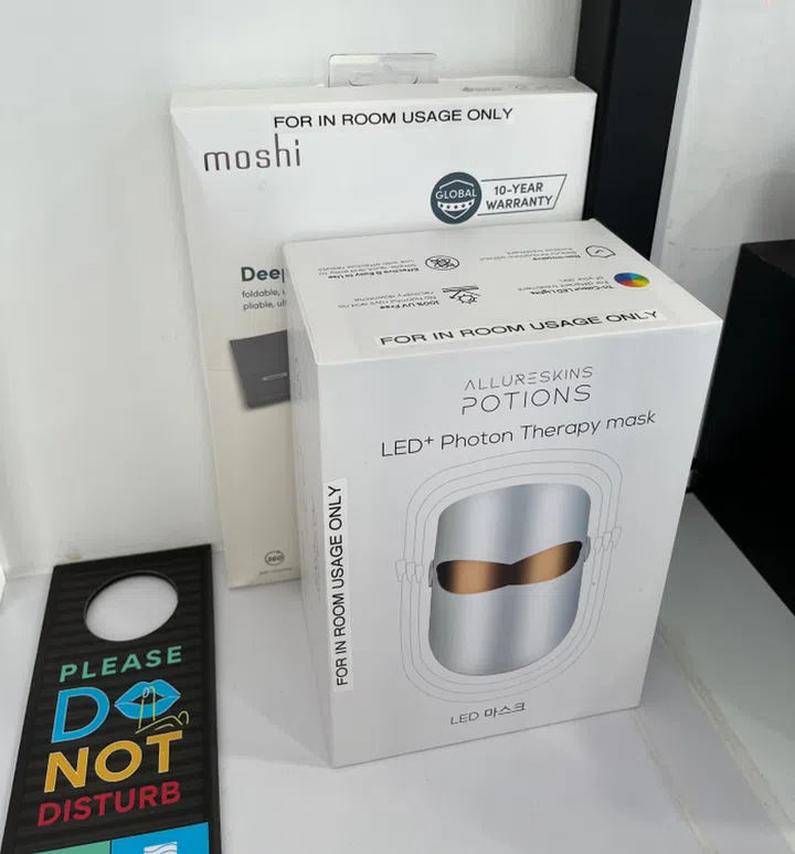 We may not have received toiletries, but we did have access to an LED+ Photon Therapy Mask and a Moshi Deep Purple UV mobile phone sanitiser that rids your phone of germs in just four minutes; almost an essential in this pandemic.