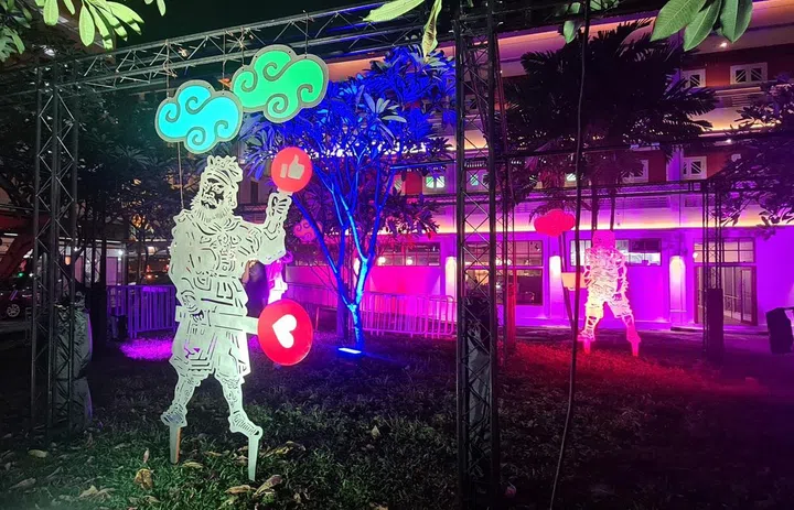 What: Traditional Eastern figures meet modern elements with this tongue-in-cheek light installation by local visual artist and designer Justin Lee, which you can find right in front of the Stamford Arts Centre.