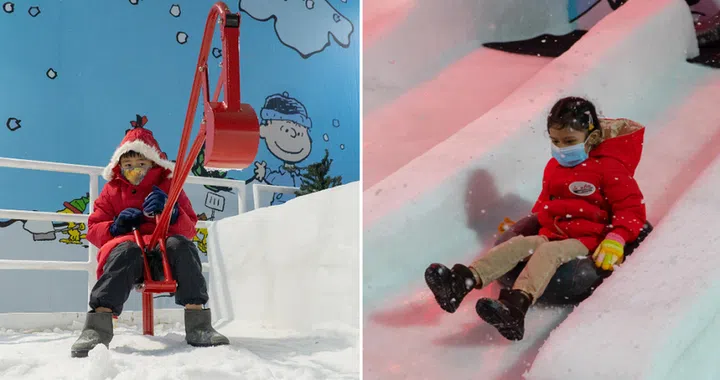 On the second level of the Peanuts Snow Hangout, there's a snow digger site where the kiddos can dig mini trenches with snow excavators. Experience sub-zero temperatures at the snow pit and the whole fam can have a magical experience watching snow float down the 7m-tall Peanuts Snow Hangout with an enchanting light and sound show that lasts one to two minutes.