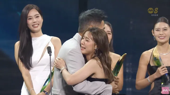 The former K-pop idol and Emerald Hill star said she was extremely thankful to be standing on this stage, especially in front of her “sister” Chantalle Ng. The sweet shoutout made Chantalle go “aww” and burst into tears.