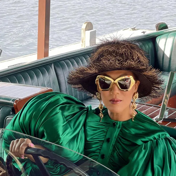 Ban also doubles as a social media influencer, with more than 139,000 followers on Instagram. Her account @lynn_ban provides a glimpse into her unique sartorial choices, from a psychedelic Jean Paul Gaultier jumpsuit at a ski resort to a vintage emerald Pierre Balmain couture blouse and Valentino hot pants combo out on Lake Placid in New York.