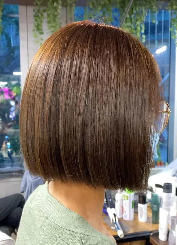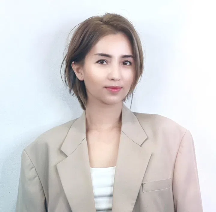 "It's a cross between a bob and a pixie haircut. Hair is given texture with layers at the crown for greater body and lightness. It is the go-to haircut right now in Seoul for women who wish to sport short hair. Despite its length, it still looks feminine, soft, and approachable – traits that are embraced by many Korean customers."