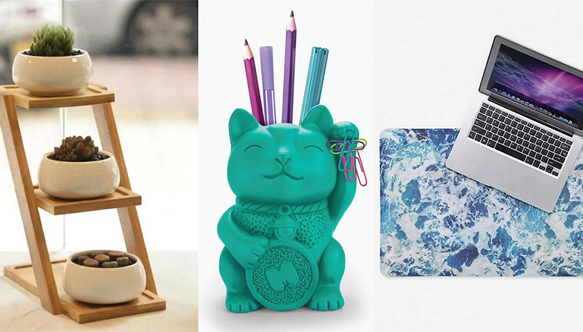Your surroundings can actually take a toll on your mental well-being. Since you’re bound to spend most of your day in one spot, you might get creative, decorating it with accents that keep you happy and inspired, which in turn leads to a more effective and productive you. Here are 13 stylish desk accessories that will make you want to come to work.
