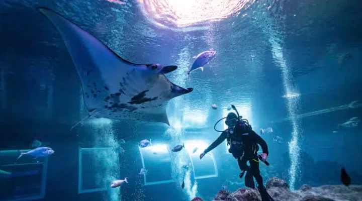 - $328 for open water dive (SCUBA-certification is required. Inclusive of Adventure Cove Waterpark admission.)