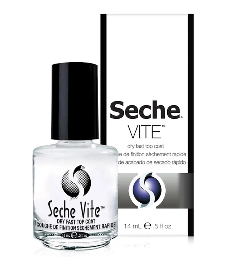 Get your nails dry as quickly as possible. A quick-dry topcoat is a must-have. Another quick dry tip? Dipping your fingertips into a bowl of ice water can “freeze” the polish into position.