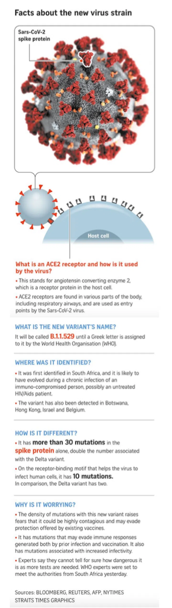 The variant has 32 mutations in its spike protein – about double the number associated with the Delta variant.