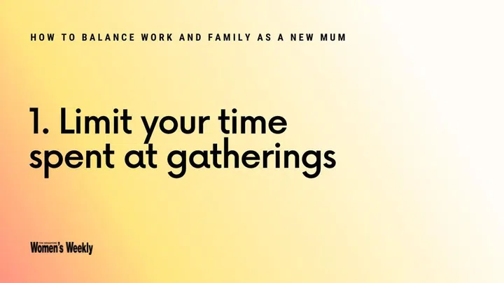 The first option is to let your colleagues know that you want to join them for the after-work gatherings. Due to time constraints, you can only be there for a short time and may have to leave the gathering earlier. You can also suggest having gatherings that start earlier, so that you can still make it home for baby’s bedtime. Another way is to space out your presence at these functions – a literal balance of ‘yes’ vs ‘no’ responses.